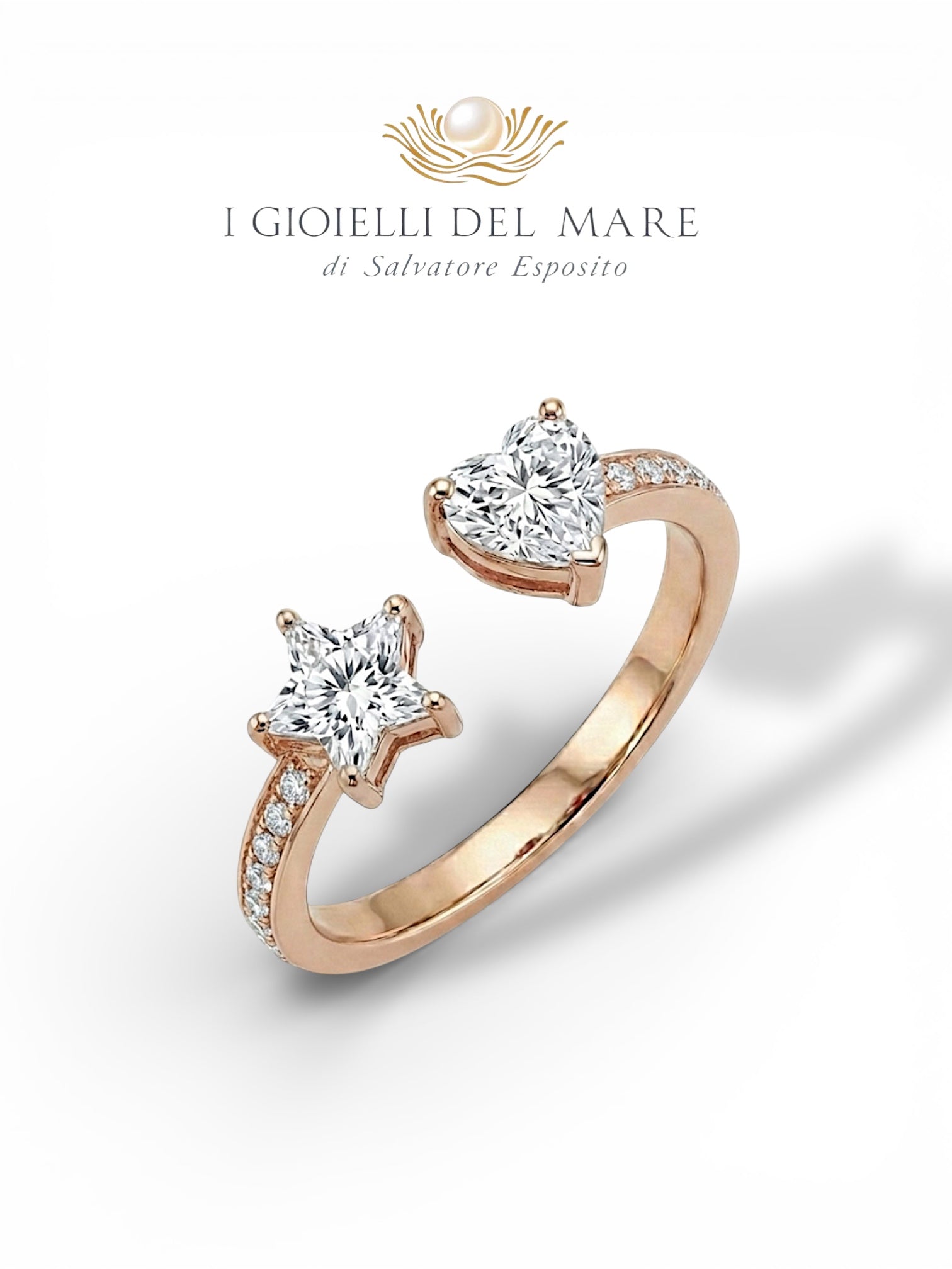 Anello in oro giallo con Diamanti taglio a stella e taglio a cuore (Info su richiesta)