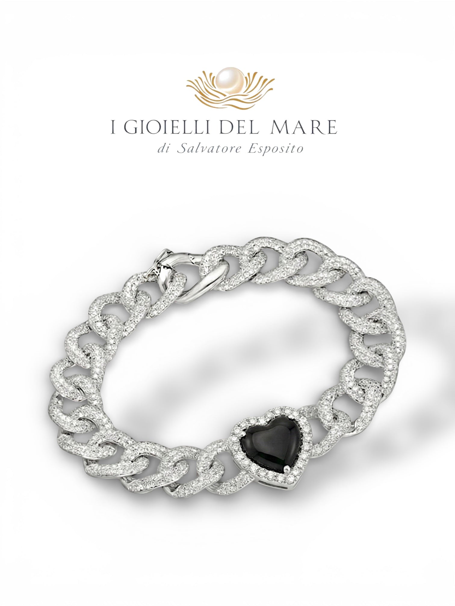 Bracciale in oro bianco e brillantini con diamante nero taglio cuore (Info su richiesta)