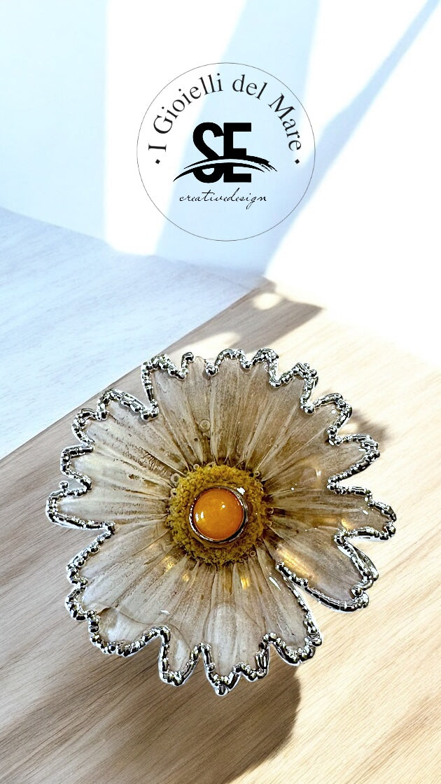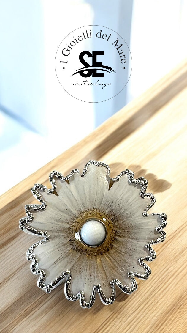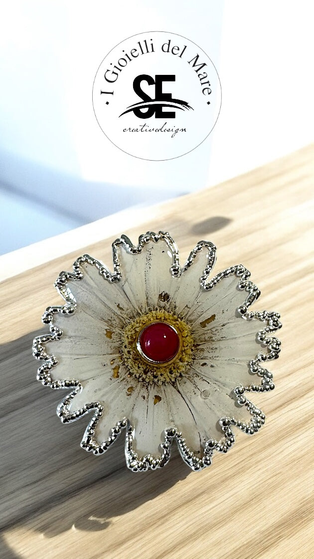 Ciondolo Margherita naturale in argento con pietra naturale incastonata