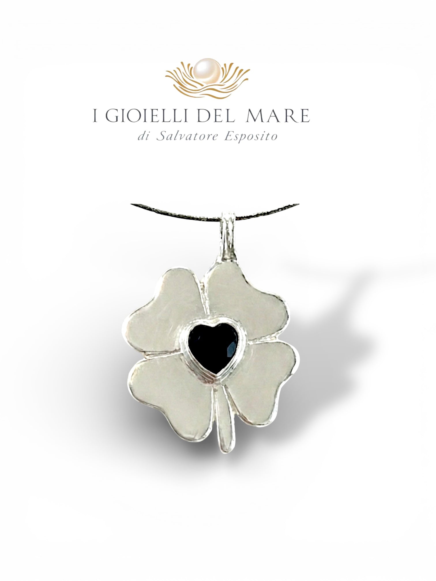 Ciondolo quadrifoglio in oro bianco ed onice (Info su richiesta)