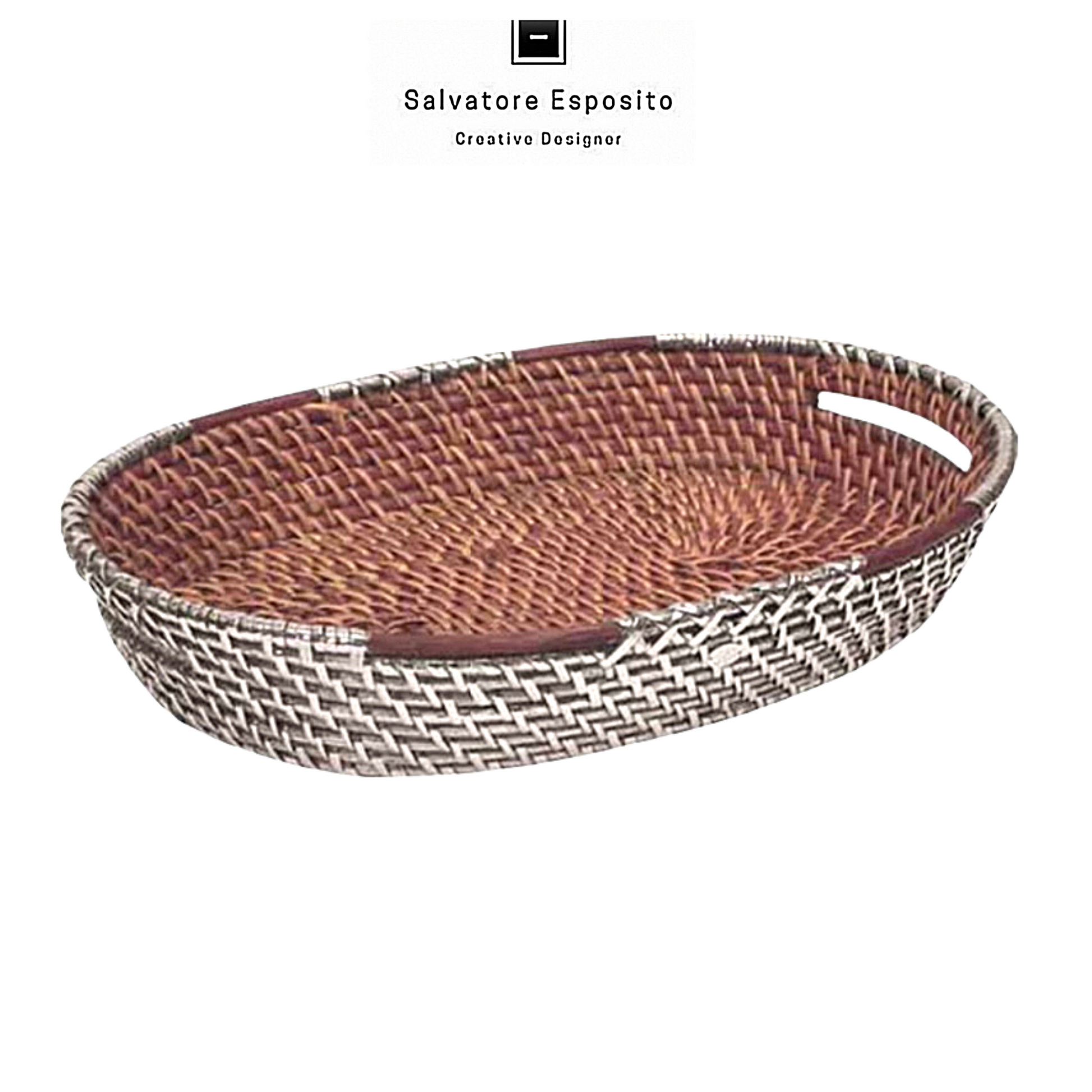Cod.82428 Cesto ovale con manici in rattan rivestito in argento