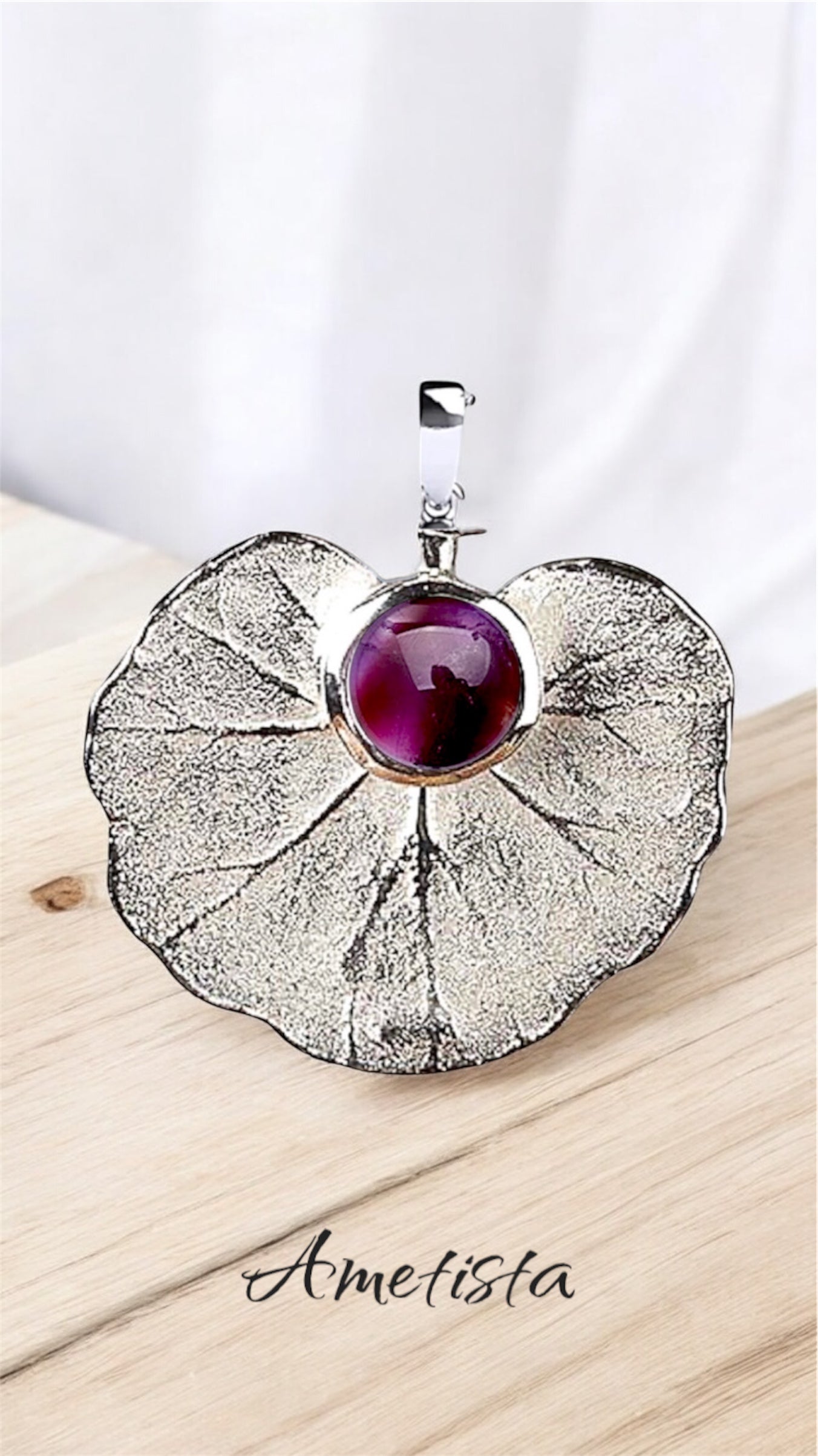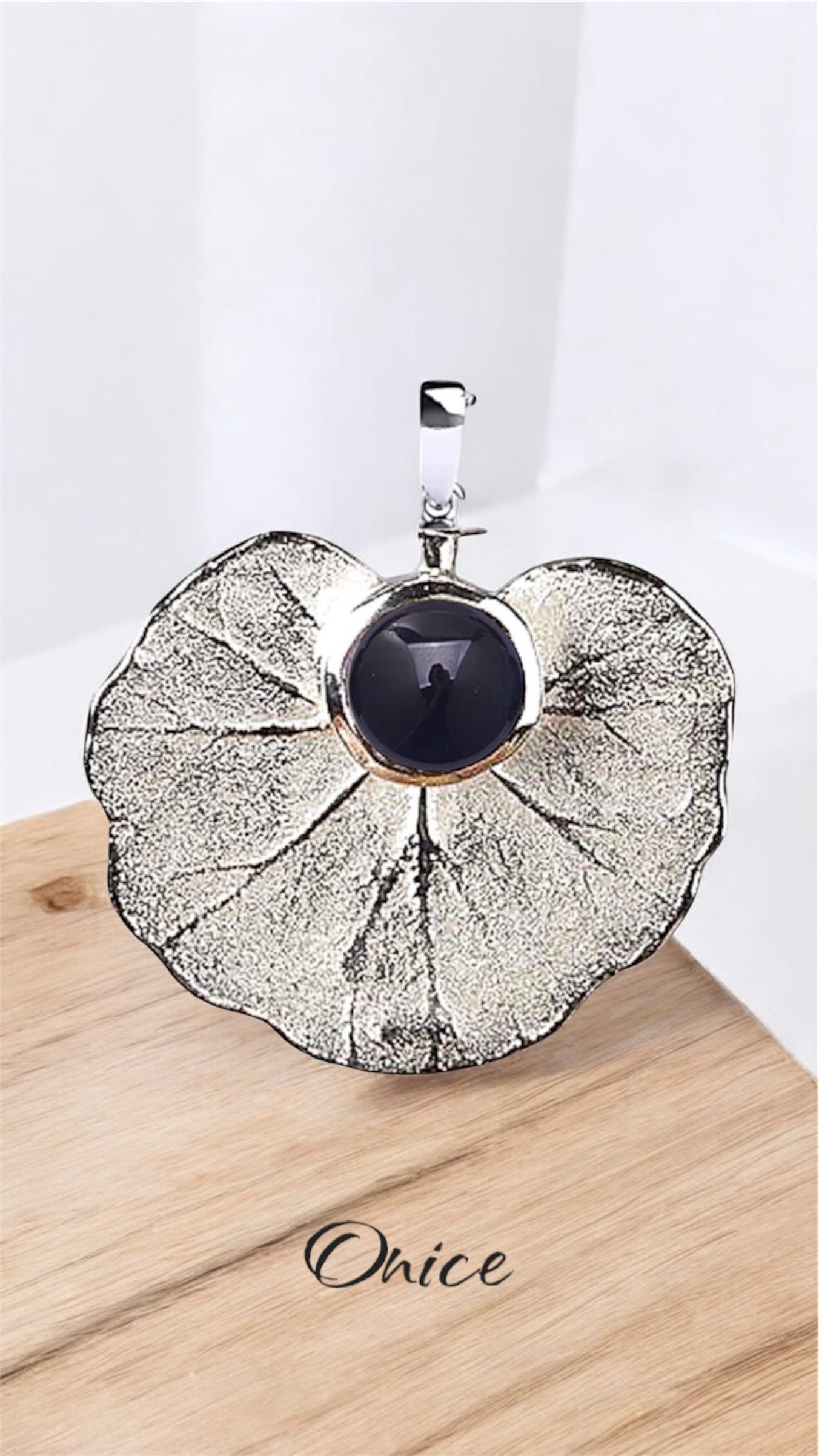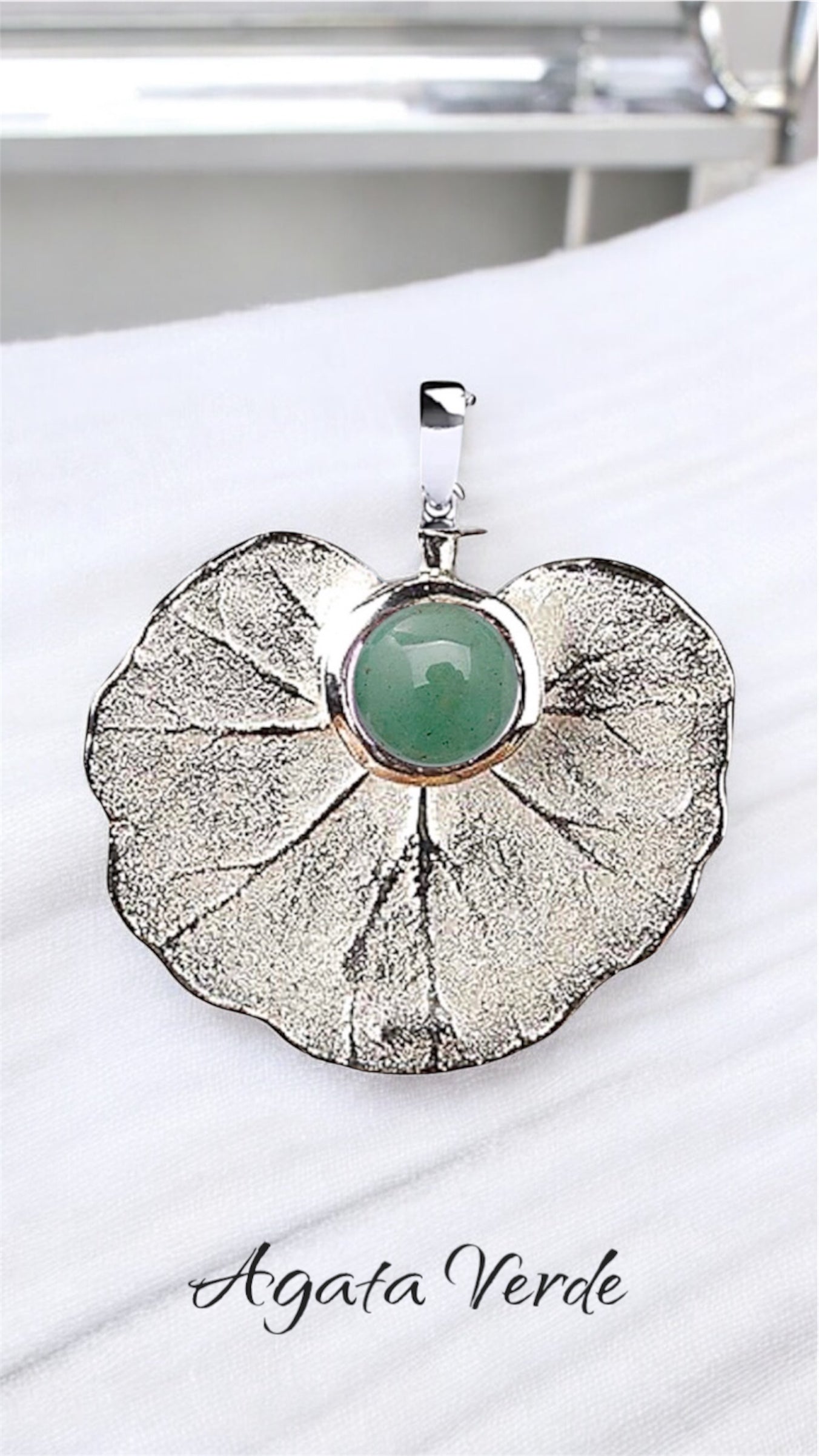 Cod.Ger1 Ciondolo foglia geranio naturale in argento